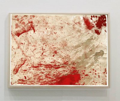 Hermann Nitsch (* 1938) ist einer der wichtigsten Vertreter des Wiener Aktionismus. Seine abstrakten Schüttbilder beziehen sich auf seine Orgien der Mysteries Theatre Performances.