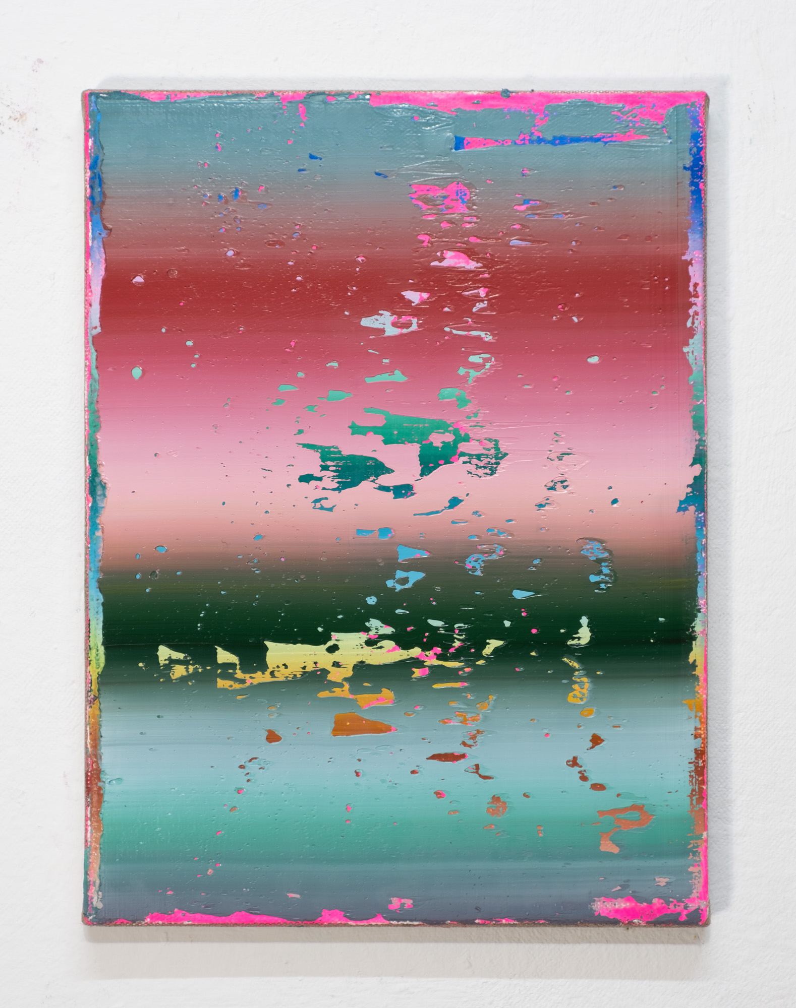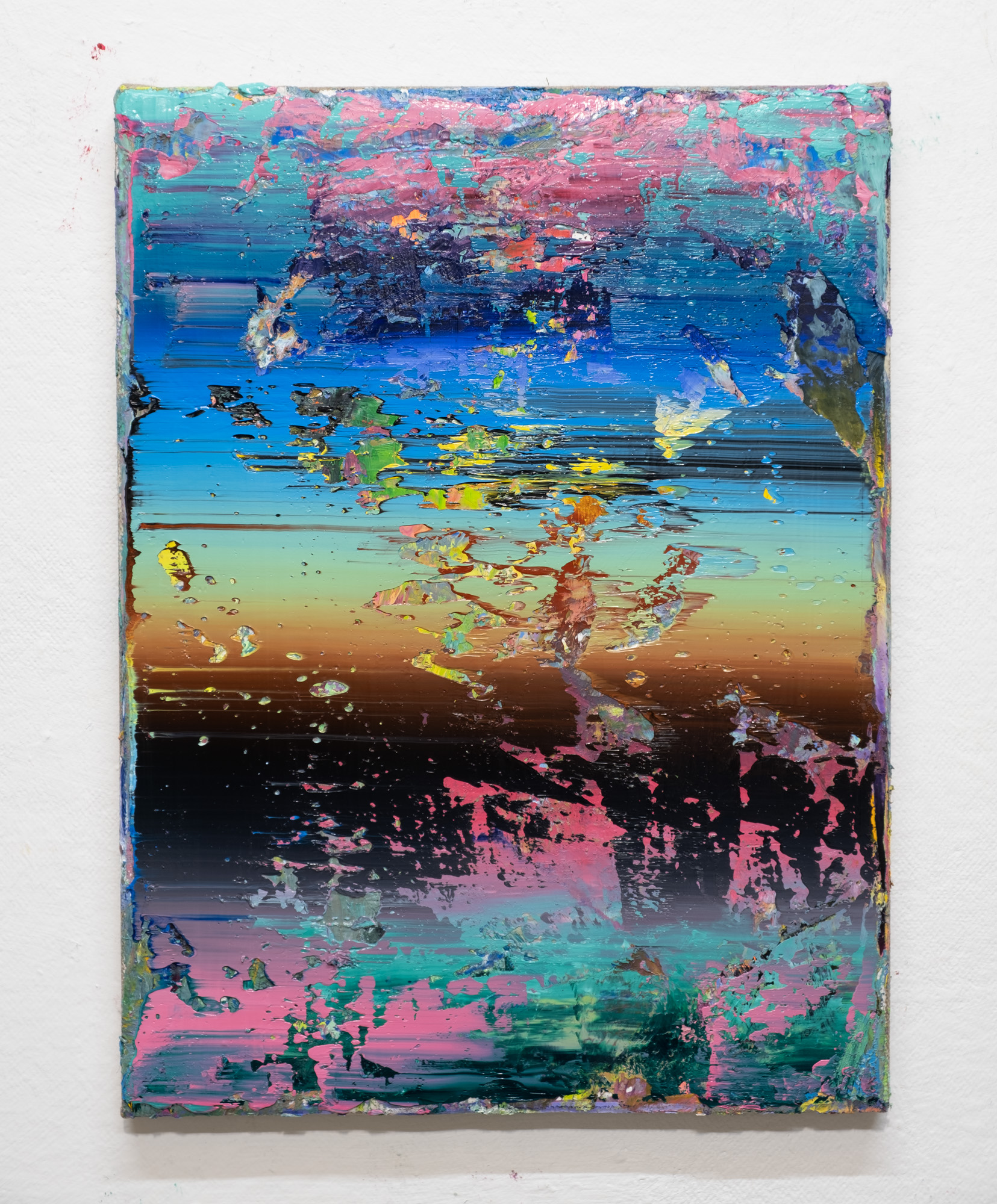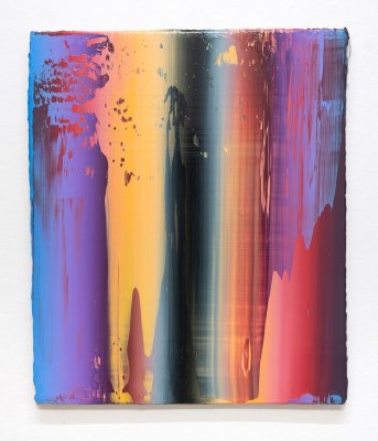 Born in Vienna, 1979, Michael Ornauer is an Austrian contemporary artist. He deals intensively with the possibilities of colour play and that of its substance and materiality. With the interplay between the conscious and the unconscious, he creates colourful and monochrome works and deliberately moves away from the obvious beauty and concentrates on the spirituality of Wabi-Sabi, the contemplation of imperfection and impermanence. In his Stripe series, it’s about rhythm and colour and structure, and random spread. With missing spots of colour and thick layers of paint that go beyond the edge of the picture, he works against the urge of the flawlessness. In his Monochrome series, Ornauer focues on the matured, veiled and broken, by overpainting colourful finished paintings with blackboard paint and then bringing out underneath layers of paint through final sanding.