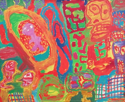 Acrylic paint and chalk on paper